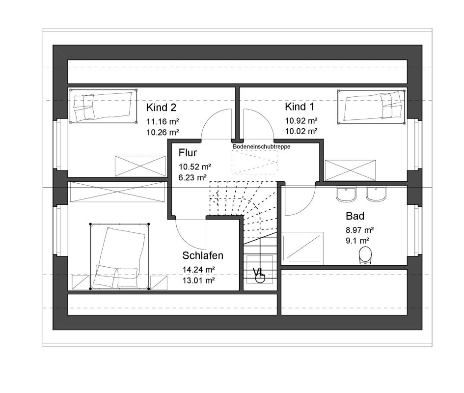 Erdgeschoss: offener Wohn- und Essbereich, separate Küche, HWR, Büro und Gäste-WC