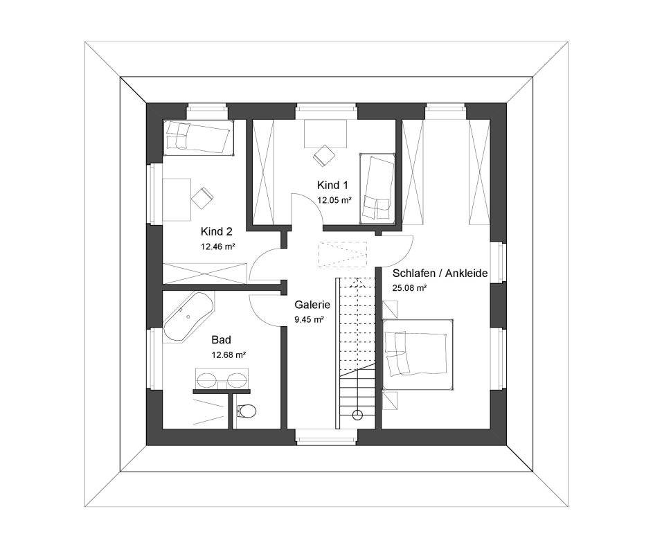 Obergeschoss: 2 Zimmer, Schlafzimmer mit Ankleide und Badezimmer