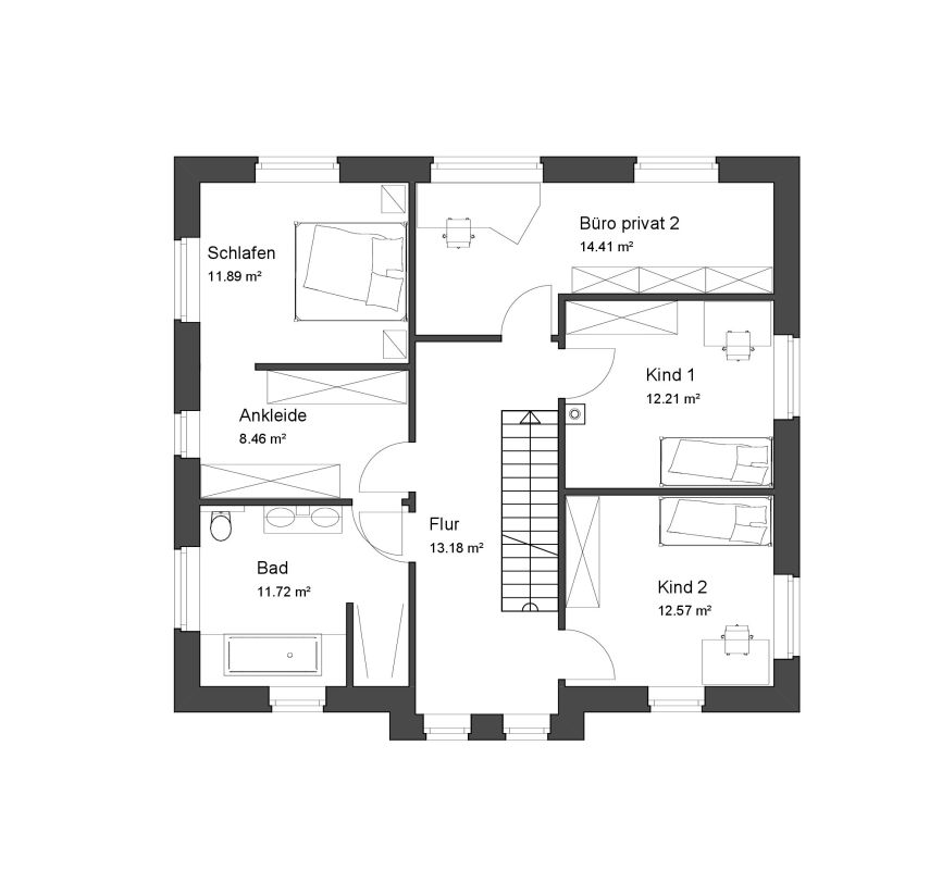 Obergeschoss: 4 Zimmer + Ankleide und Badezimmer
